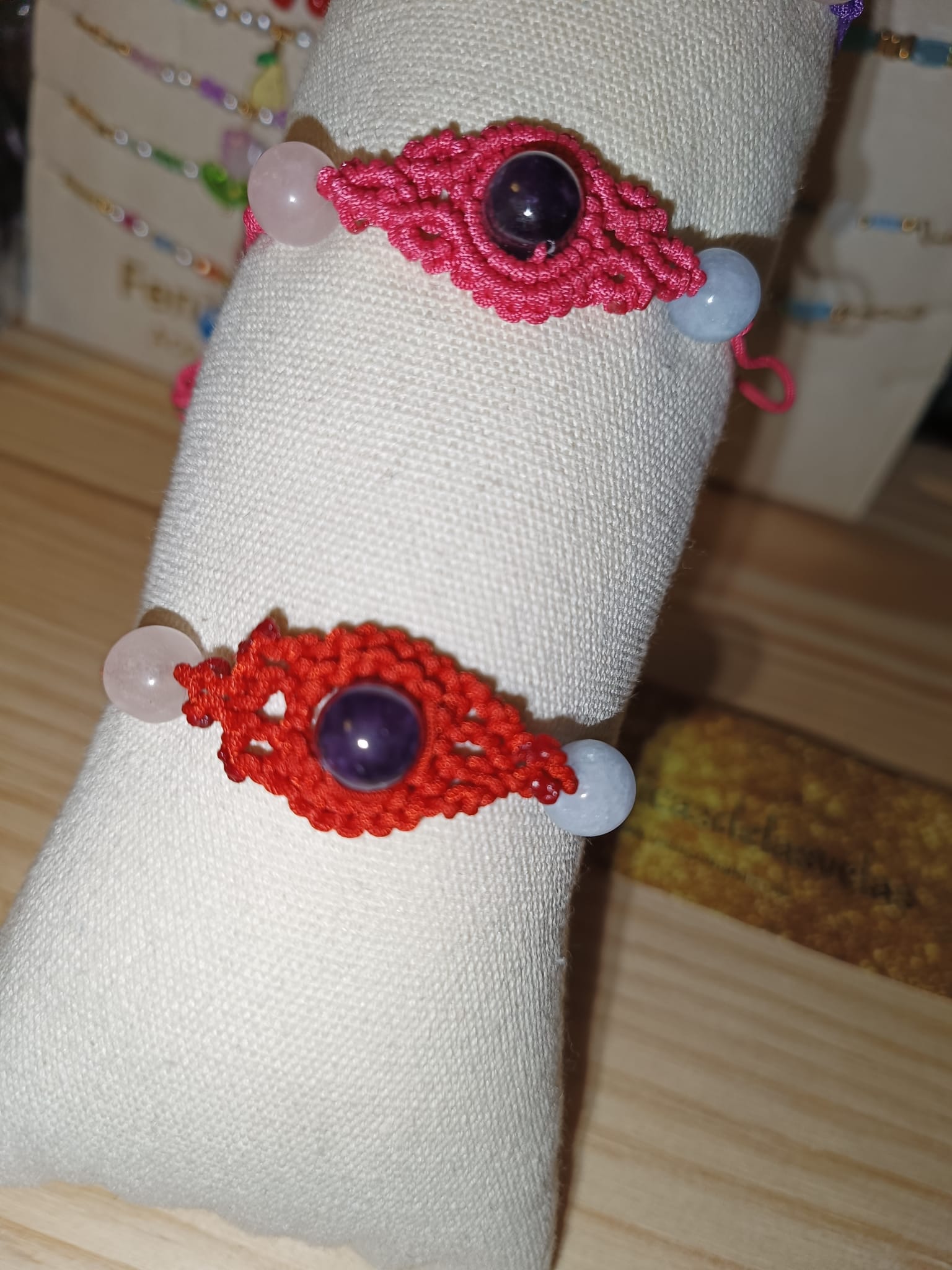 Las pulseras están realizadas a mano de forma artesanal y llevan mineral de