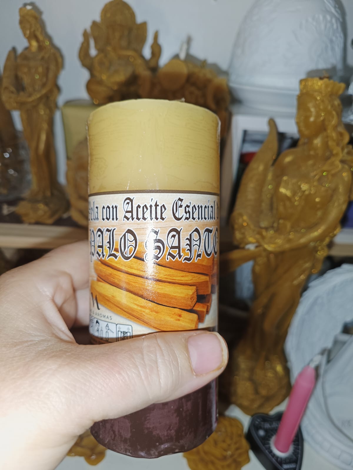 Velas realizadas de forma artesanal con aceite esencial de palo santo y otros aceites para lograr aquello que deseamos y anhelamos a través de la magia del fuego y nuestras peticiones. Un mundo de aromas y intenciones.